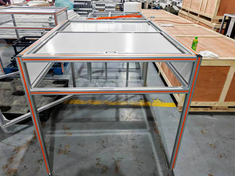 鋁型材防護(hù)罩是一種以工業(yè)鋁型材為設(shè)備外罩外殼,多見(jiàn)于各種非標(biāo)機(jī)械設(shè)備的外罩,各種輸送線(xiàn)流水線(xiàn)外罩,大型潔凈棚外罩,焊房大型護(hù)罩等,能起到區(qū)域隔離,靜音防塵,保護(hù)設(shè)備及生產(chǎn)人員安全。鋁型材制作的防塵罩的樣式有很多,有些是密封的,可以起到隔離噪音的作用,凈化車(chē)間環(huán)境。有些是帶有開(kāi)關(guān)門(mén)的,不僅可以起到防塵的作用,而且還利于后期維修工作。亞克力板也有透明的,茶色,紅色等顏色可以選擇。